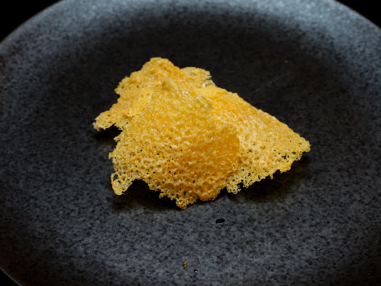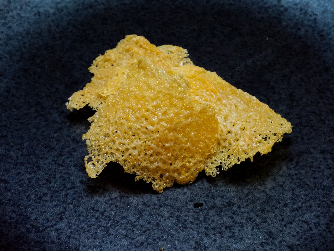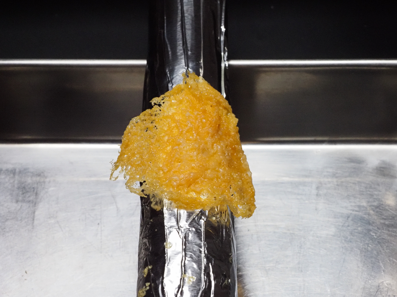 を押します。170℃に加熱します。170℃に達しアラームが鳴ったら、大さじ1〜2くらいのパルミジャーノをサッと薄くフライパンに敷き