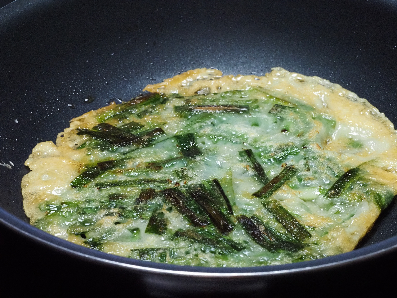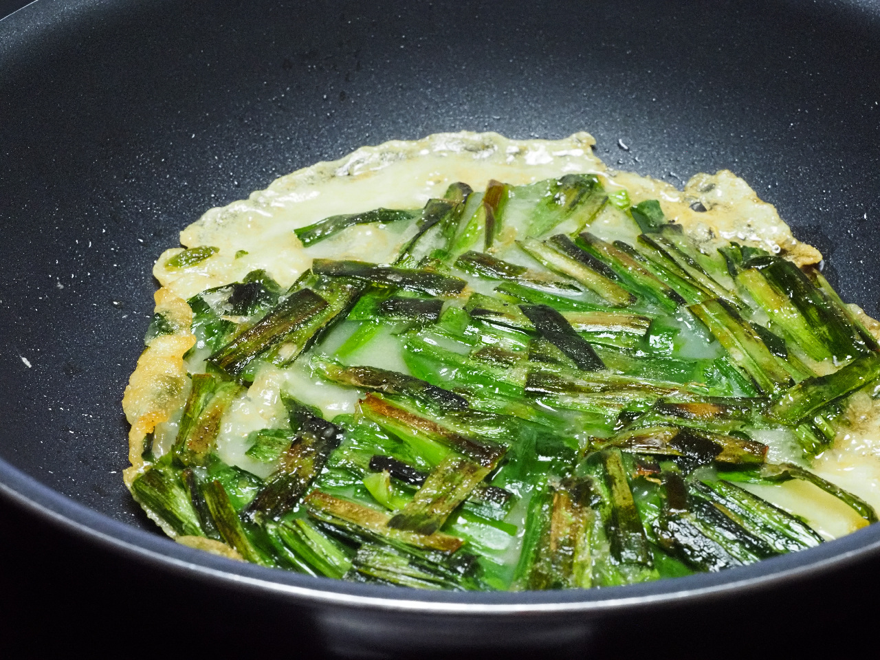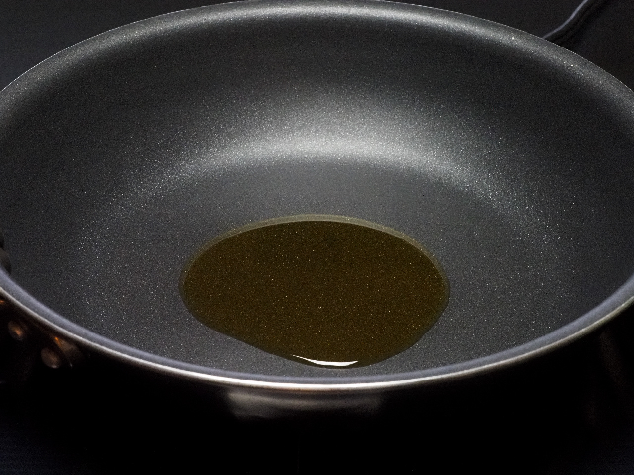 をタップしてください。表面が平らになるようならします。片面を4分間焼きます。