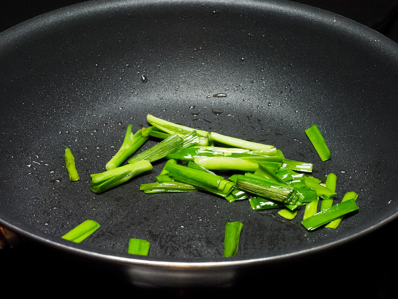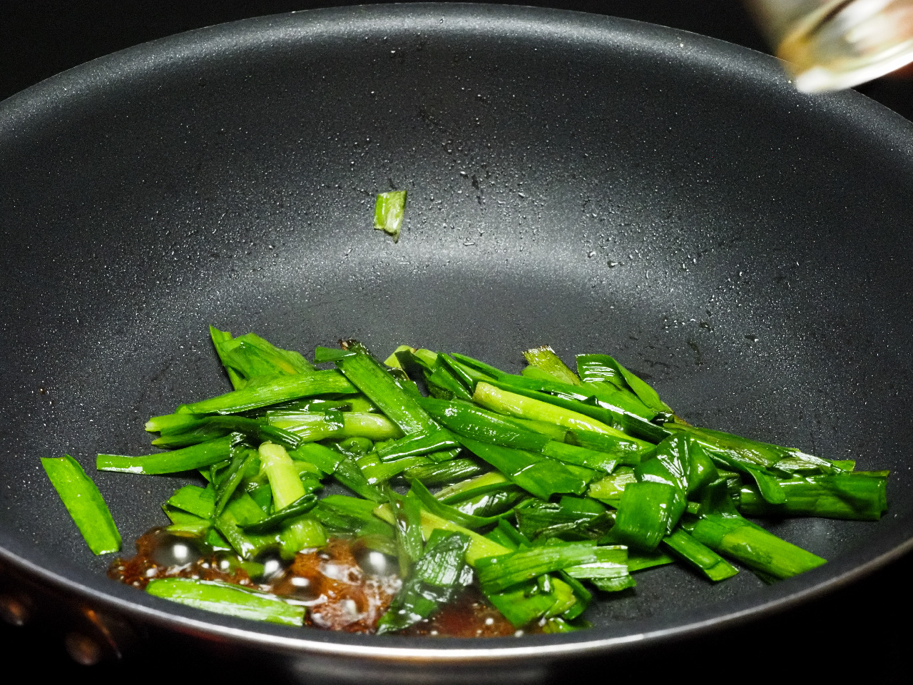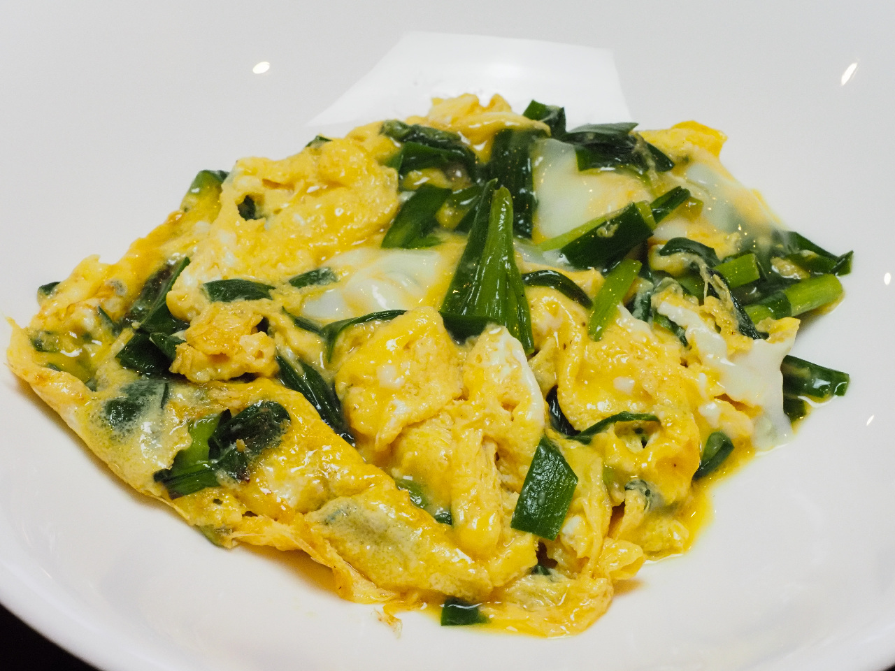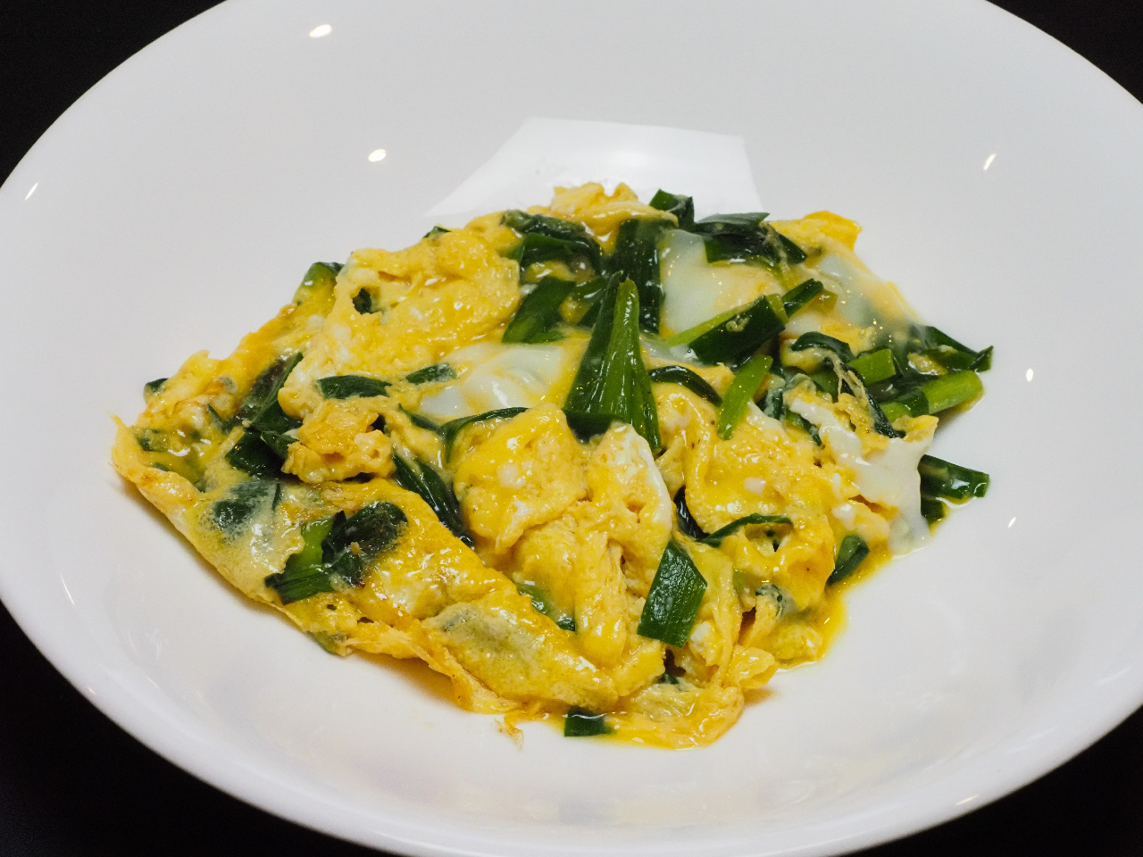 をタップして卵液の入ったボウルににらを入れて軽く混ぜます。