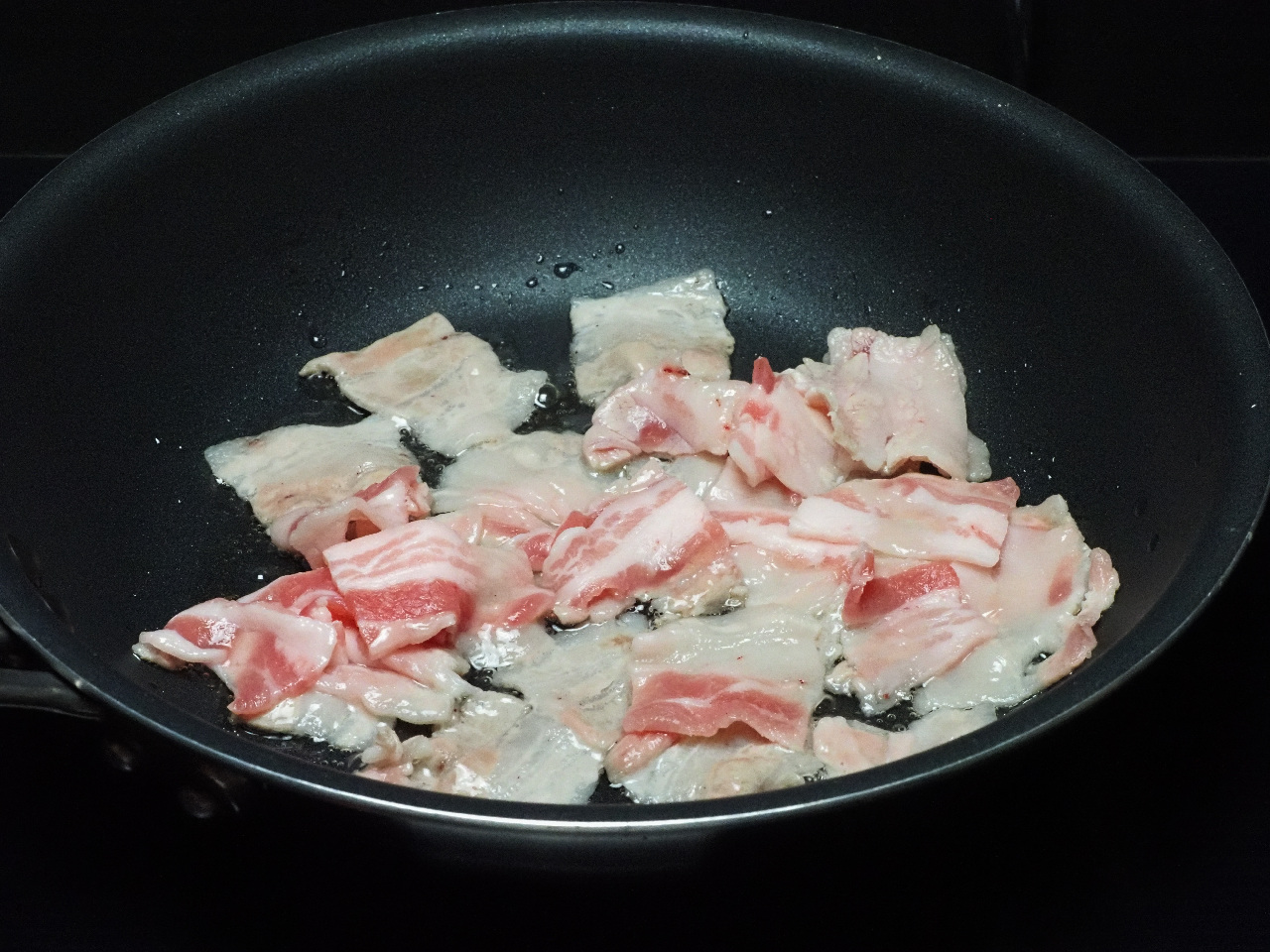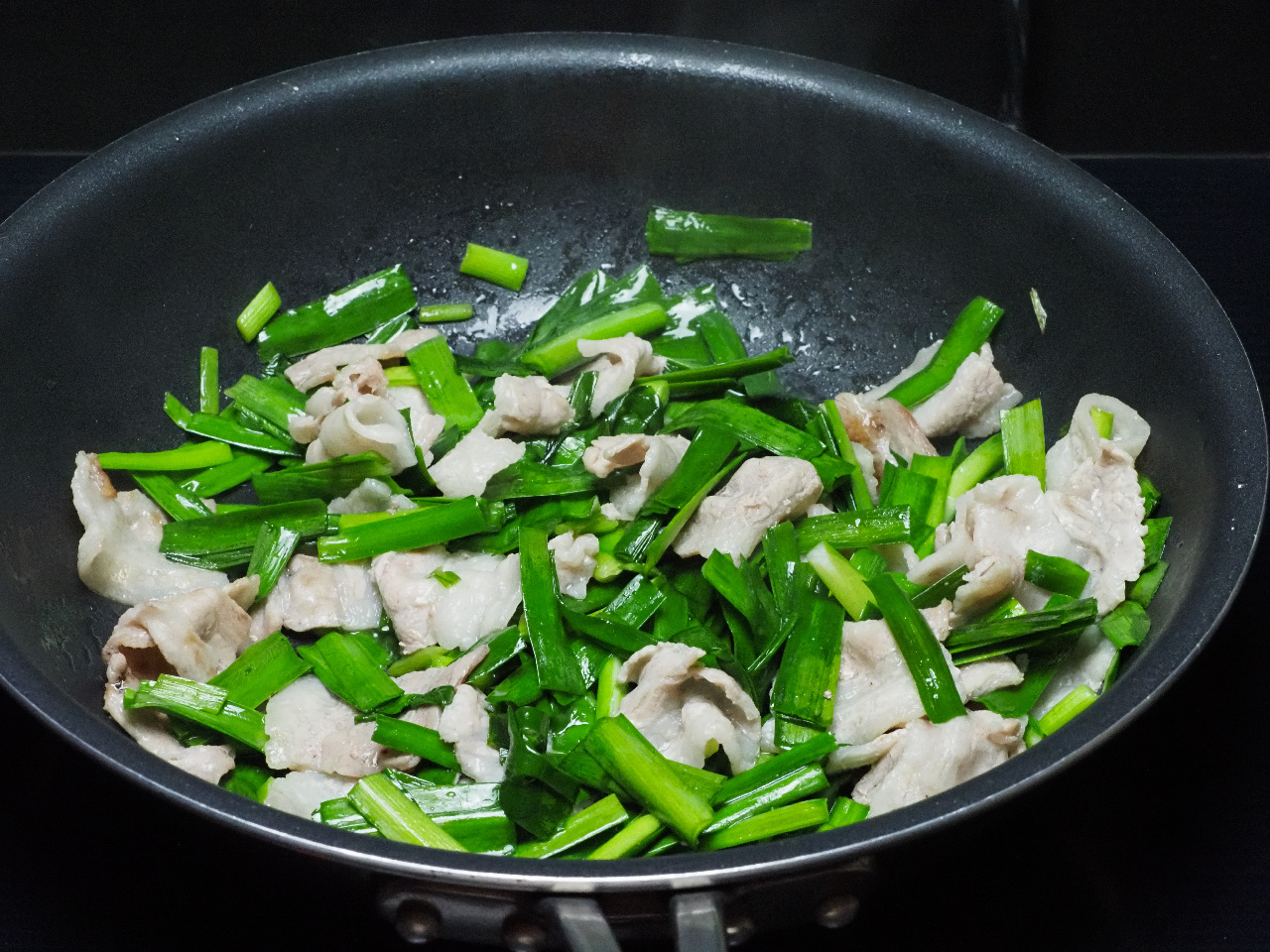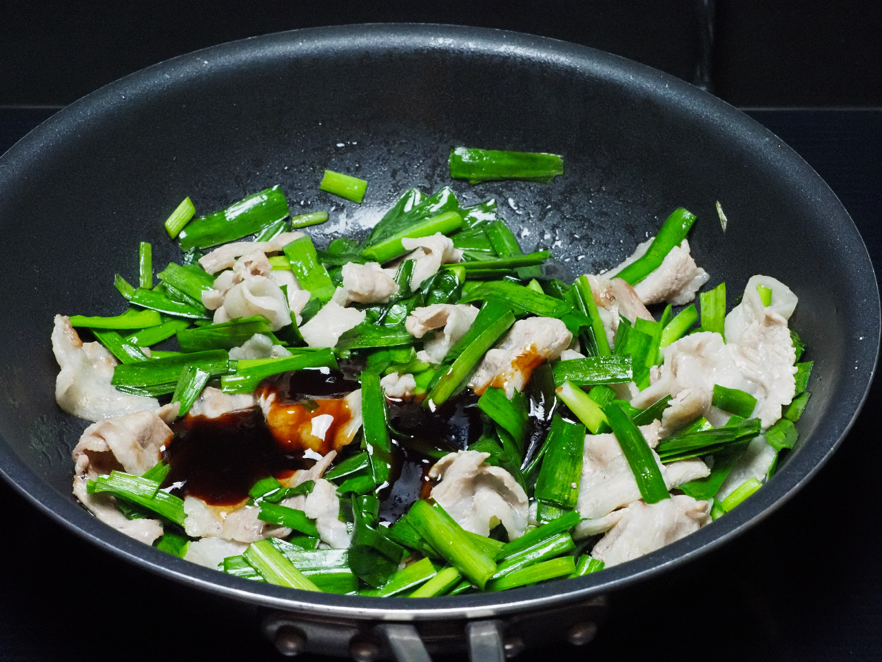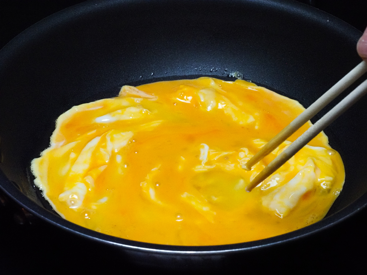 をもう一度タップ。加熱を再開して調味料と混ぜ合わせます。